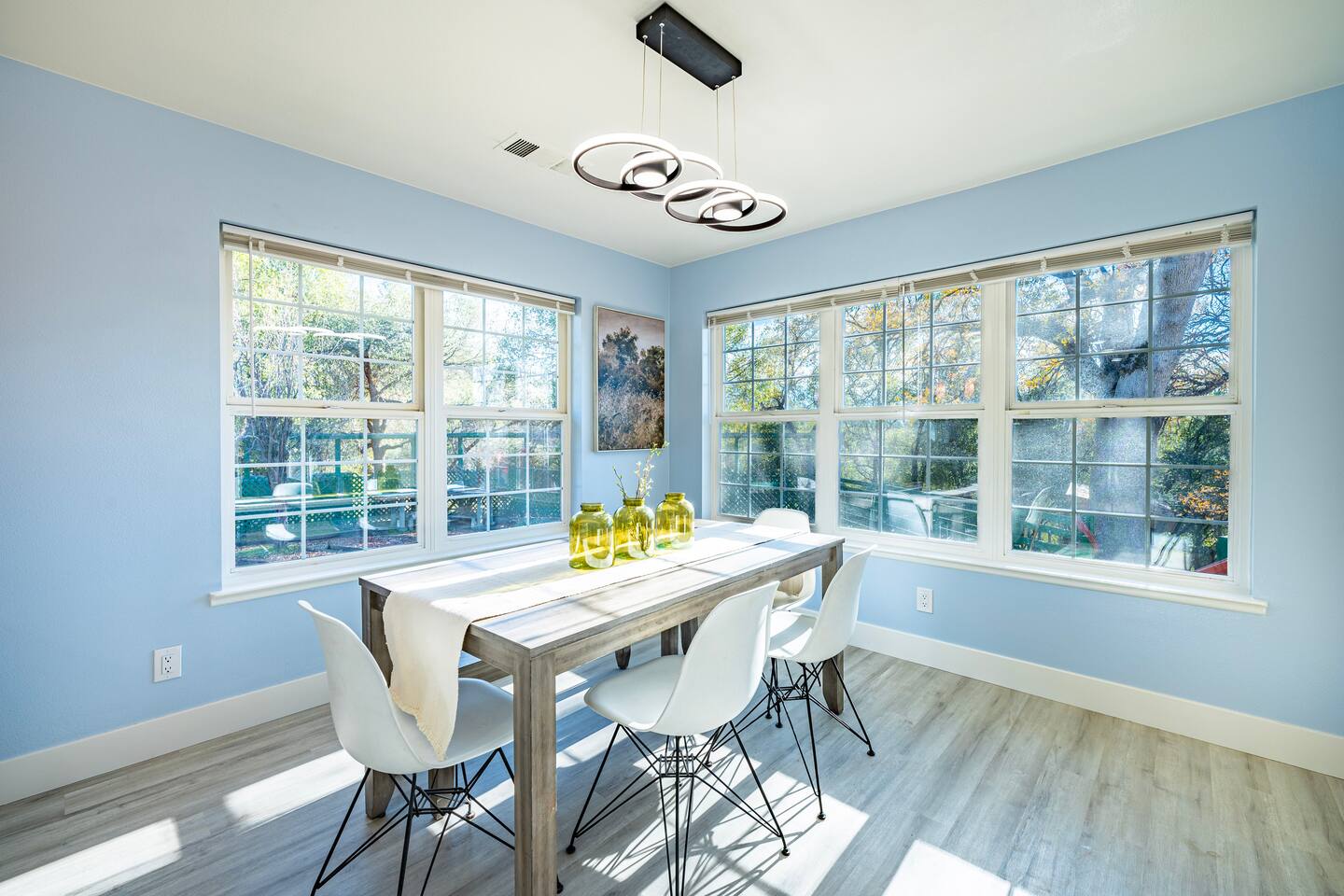 Introducing a spacious sunset villa with a 2200 sq ft modern layout. Enjoy an air-conditioned Game Room, Whirlpool Jacuzzi, and a deck with a sunken Hot tub. Fire-pit, BBQ grill, and a 4-car Driveway with EV charger for convenience. Pet-friendly ($100 fee applies) with a fenced yard. Wildlife and sunset views from the deck. Only 5 mins to shops and dining. Yosemite National Park is 17 miles away. Please note that while this is a large house, we do not allow parties or events.