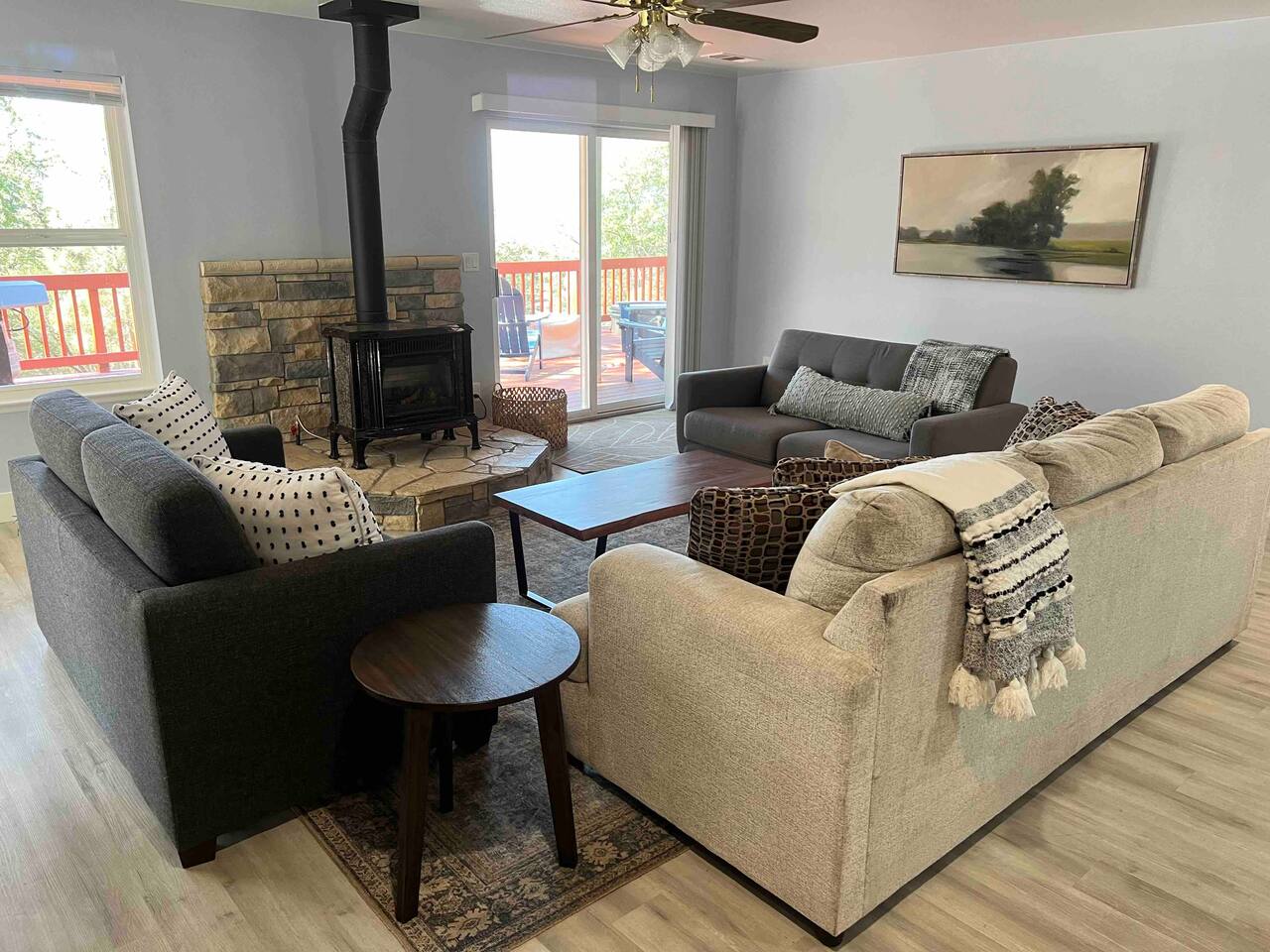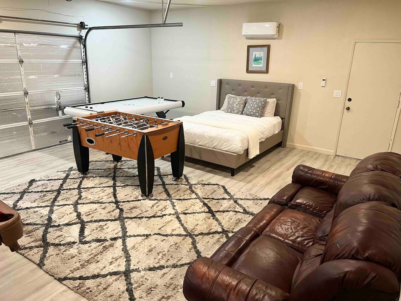 Large 3 acre property with room to roam and nice views. The house has been recently remodeled and has 4 large bedrooms all with queen size beds. The garage has been converted to a game room with mini split climate control and also has a queen bed. 3 full size bathrooms. Fully appointment kitchen. Laundry machines.
